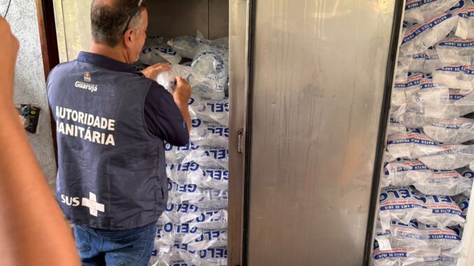 A Prefeitura de Guarujá interditou uma fábrica clandestina de gelo instalada nos fundos de um imóvel residencial no bairro do Guaiúba. A intervenção ocorreu após investigação da Polícia Civil, que acionou a Administração Municipal, por meio da Vigilância Sanitária e Guarda Civil Municipal (GCM).
