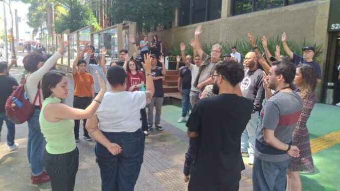 Os trabalhadores da TVT – TV dos Trabalhadores – cruzaram os braços nesta sexta-feira (6), em uma paralisação de 24 horas. A mobilização foi aprovada em assembleia dos trabalhadores da empresa com a participação dos Sindicatos dos Radialistas e dos Jornalistas e inclui manifestação em frente à sede da emissora.