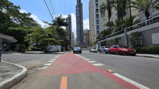 A Prefeitura de Guarujá, por intermédio da Secretaria de Mobilidade Urbana (Semob), concluiu a revitalização da sinalização viária na Ciclofaixa das Galhetas, situada na região do Mercado de Peixes, nas Astúrias. A intervenção busca solucionar um problema recorrente na área, que é o estacionamento irregular de automóveis sobre a via exclusiva para bicicletas, garantindo maior fluidez ao trânsito e segurança para os ciclistas.