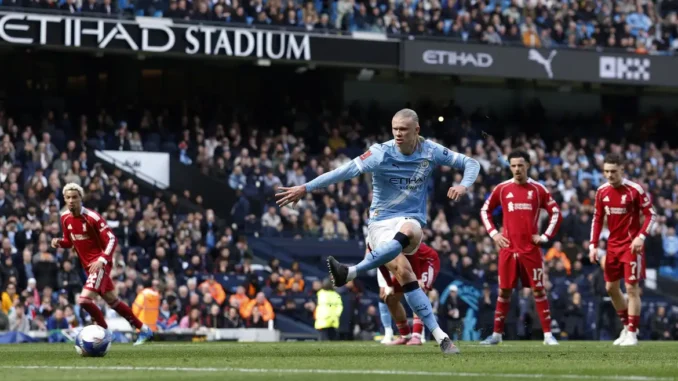 Com três de Haaland, o Manchester City goleou o Liverpool, hoje, por 4 a 0, no Etihad Stadium, pelas quartas de final da Copa da Inglaterra.