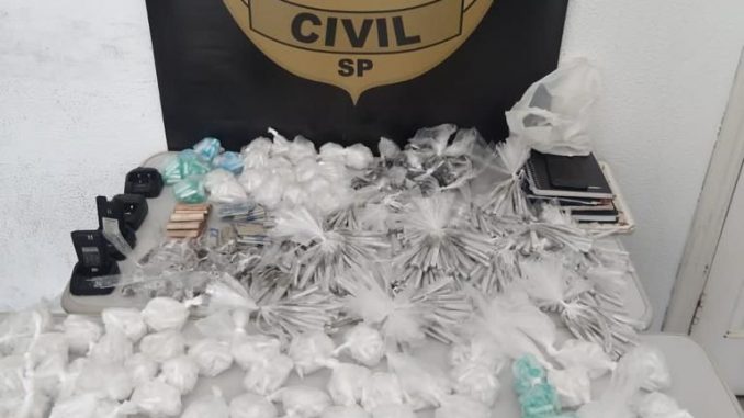 Policiais do 1º Distrito Policial de Santos efetuaram a prisão de um homem (24 anos) no Centro da cidade de Santos. As investigações desenvolvidas pela equipe apontaram ser ele o responsável pela venda de entorpecentes em pontos de drogas da região. Munidos com mandado de busca em apreensão para residência do suspeito, a equipe diligenciou ao imóvel, onde foi por ele atendido.