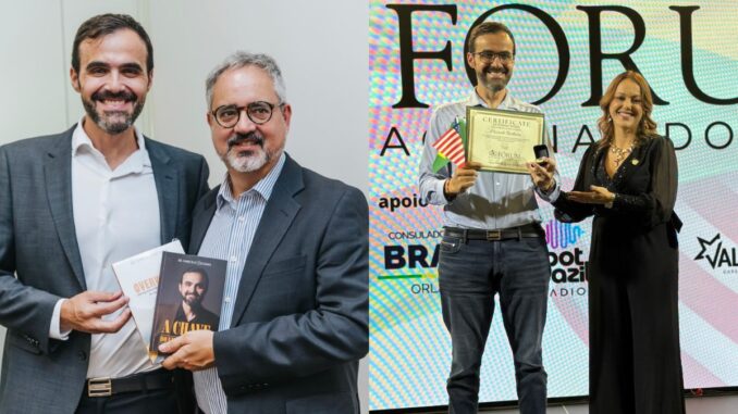 O médico Marcelo Bechara se reuniu com o cônsul-geral do Brasil em Orlando, João Lucas Quental Novaes de Almeida, antes de ser homenageado no Fórum Internacional do Livro de Orlando. O evento, realizado nos dias 18 e 19 de abril, reuniu autores brasileiros e internacionais em Orlando. Na ocasião, Bechara foi reconhecido pelo lançamento dos livros “A Chave do Emagrecimento e Obesidade – O saber e a inovação curam patologias”.