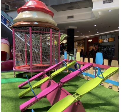 O parque conta com pula-pula em formato de sundae, mesinhas para oficinas, barco Viking, túnel em formato de casquinha de sorvete, gangorra, escalada com escorregador e outras atrações.