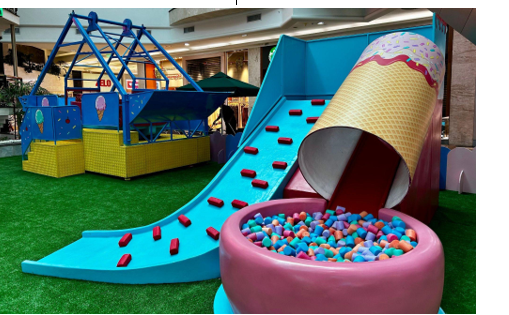 O parque conta com pula-pula em formato de sundae, mesinhas para oficinas, barco Viking, túnel em formato de casquinha de sorvete, gangorra, escalada com escorregador e outras atrações.