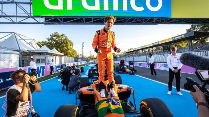 Antes da corrida, o brasileiro de Maringá (PR) tinha uma folga de 69 pontos na liderança da tabela de classificação em relação ao rival Theo Pourchaire.