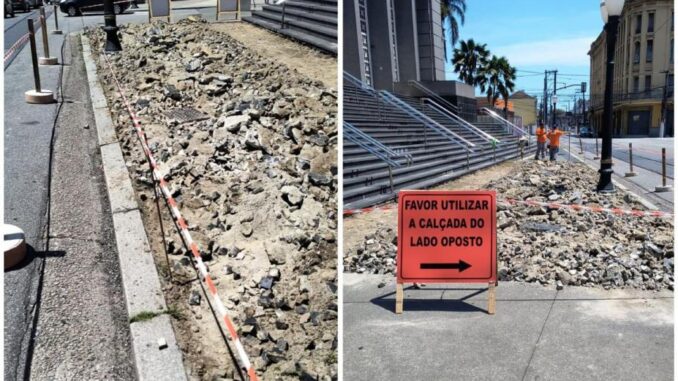 Começaram pela recomposição da calçada em frente ao Fórum as obras de requalificação da Praça José Bonifácio, no Cento Histórico. Os trabalhos, agora a cargo da Rodoserv Engenharia Ltda., foram reiniciados na última sexta-feira (26), com prazo contratual até junho.