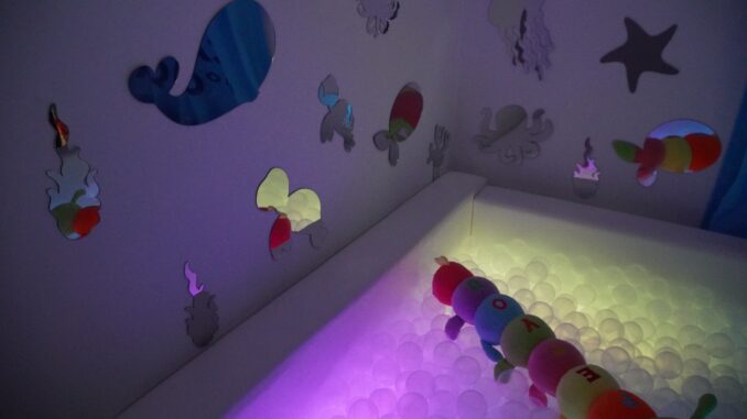 Destinado a crianças autistas, a sala tem o objetivo de promover o relaxamento, a autorregulação emocional e o desenvolvimento das habilidades sensoriais.