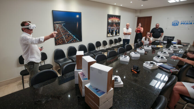 Permitir que os alunos conheçam a cachoeira do Guariúma, o encontro do Rio Itinga com o mar no Bairro Solemar ou ainda aprender detalhes sobre o costão rochoso e demais dependências da Fortaleza do Itaipu sem sair do lugar. Os alunos da rede municipal de ensino terão a oportunidade de viver essa experiência graças aos óculos de realidade virtual. Nesta segunda-feira (16), a Secretaria de Educação (Seduc) apresentou a novidade ao prefeito, Alberto Mourão, durante reunião.