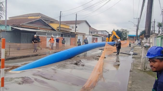 O prefeito de Guarujá, representantes da Companhia de Saneamento Básico do Estado de São Paulo (Sabesp) e equipe técnica da Prefeitura visitaram na manhã desta sexta-feira (08), as obras para importação de água por meio da travessia Santos-Guarujá, que acontecem na Rua São Paulo, em Vicente de Carvalho.