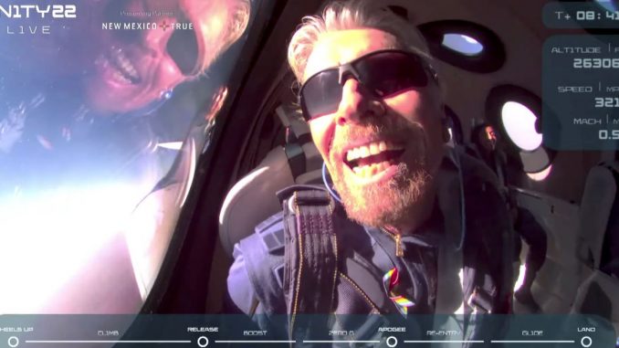 Branson, semanas atrás, voou mais de 50 milhas acima do deserto do Novo México a bordo do foguete da Virgin Galactic e retornou com segurança, no primeiro voo de teste totalmente tripulado do veículo ao espaço. O voo foi um marco para um empreendimento iniciado há 17 anos.